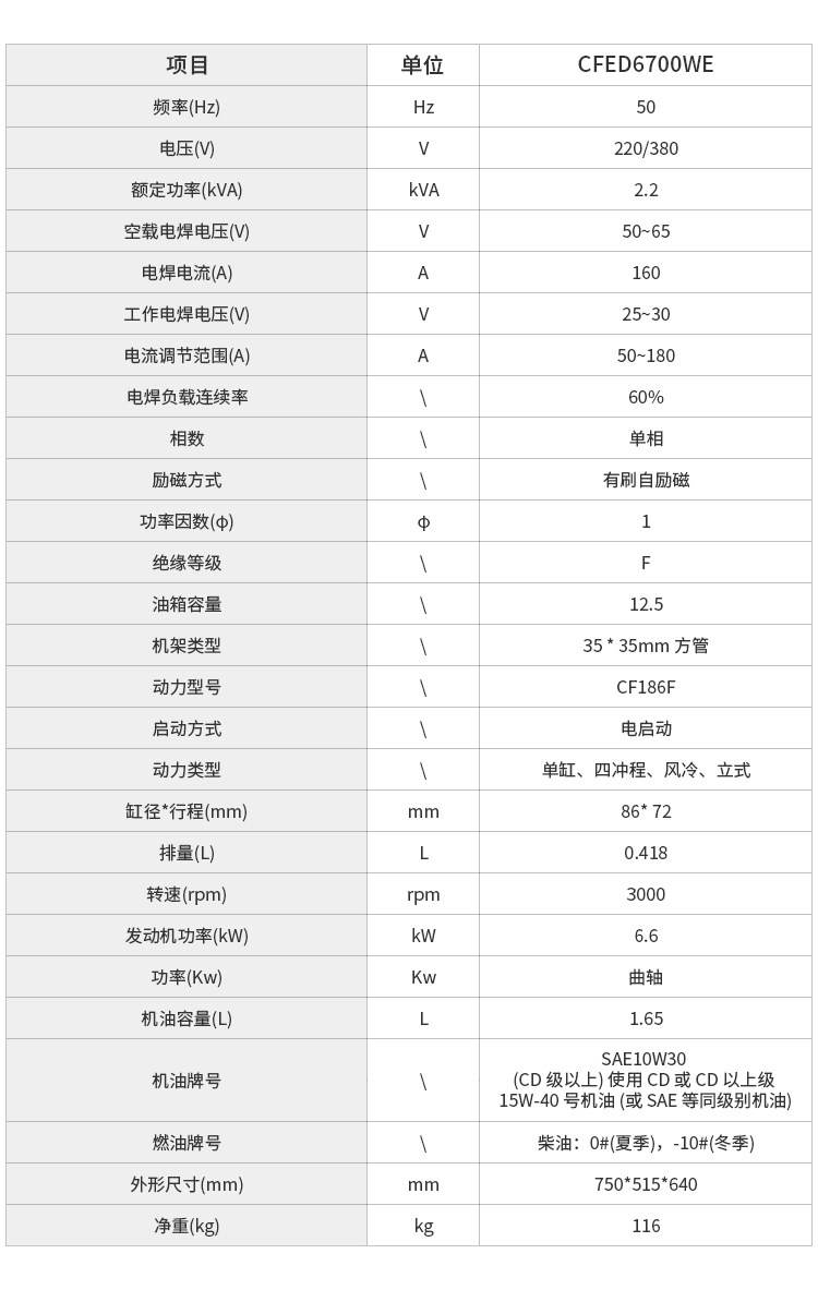 采用常發(fā)風(fēng)冷四沖程柴油發(fā)動(dòng)機(jī),提供焊接電流。